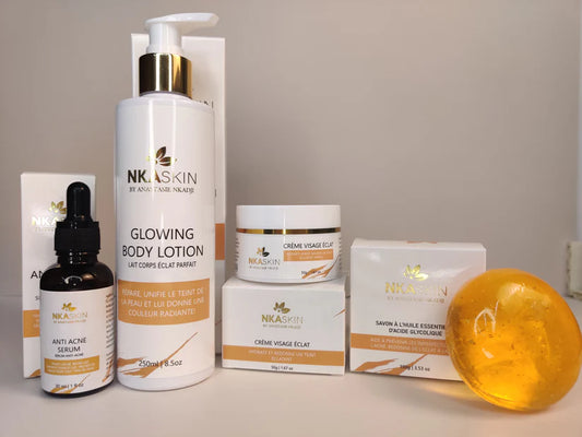 Vos produits sont magnigiques, j'avais achété le DUO Serum et crème visage de la gamme Nka Skin et je suis sans voix face au beau changement sur mon visage.